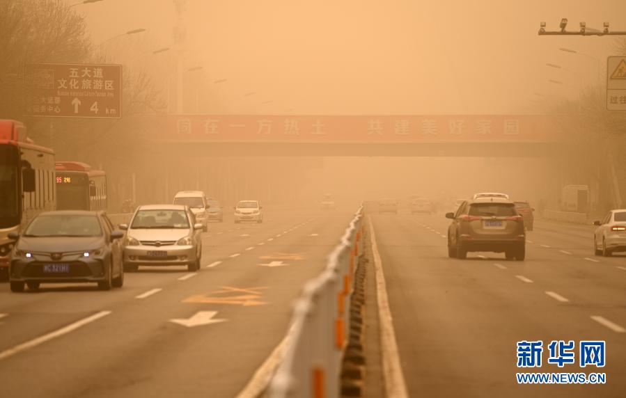 這是3月15日拍攝的天津市南開(kāi)區(qū)道路。當(dāng)日,我國(guó)北方多地出現(xiàn)沙塵天氣。新華社記者 李然 攝