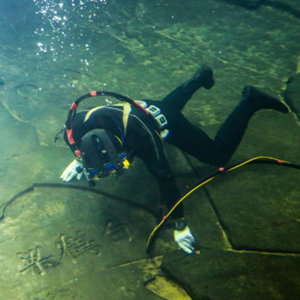 3月15日,在長(zhǎng)江水下40多米的白鶴梁題刻無(wú)壓容器罩內(nèi),潛水員在進(jìn)行清理作業(yè)。