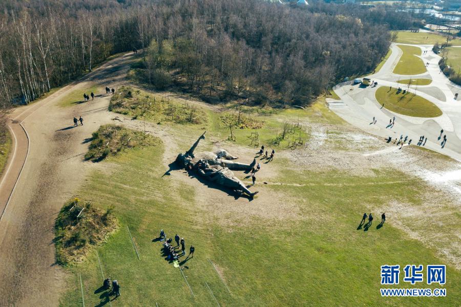 這是3月20日在比利時(shí)博姆市的德舒爾森林公園拍攝的“巨人”雕塑(無(wú)人機(jī)照片)。新華社記者 張鋮 攝