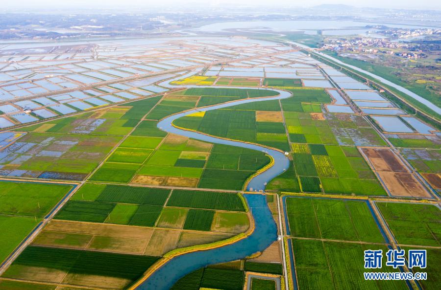 3月24日拍攝的江西省九江市彭澤縣芙蓉農(nóng)場(chǎng)的田園風(fēng)光(無人機(jī)照片)。