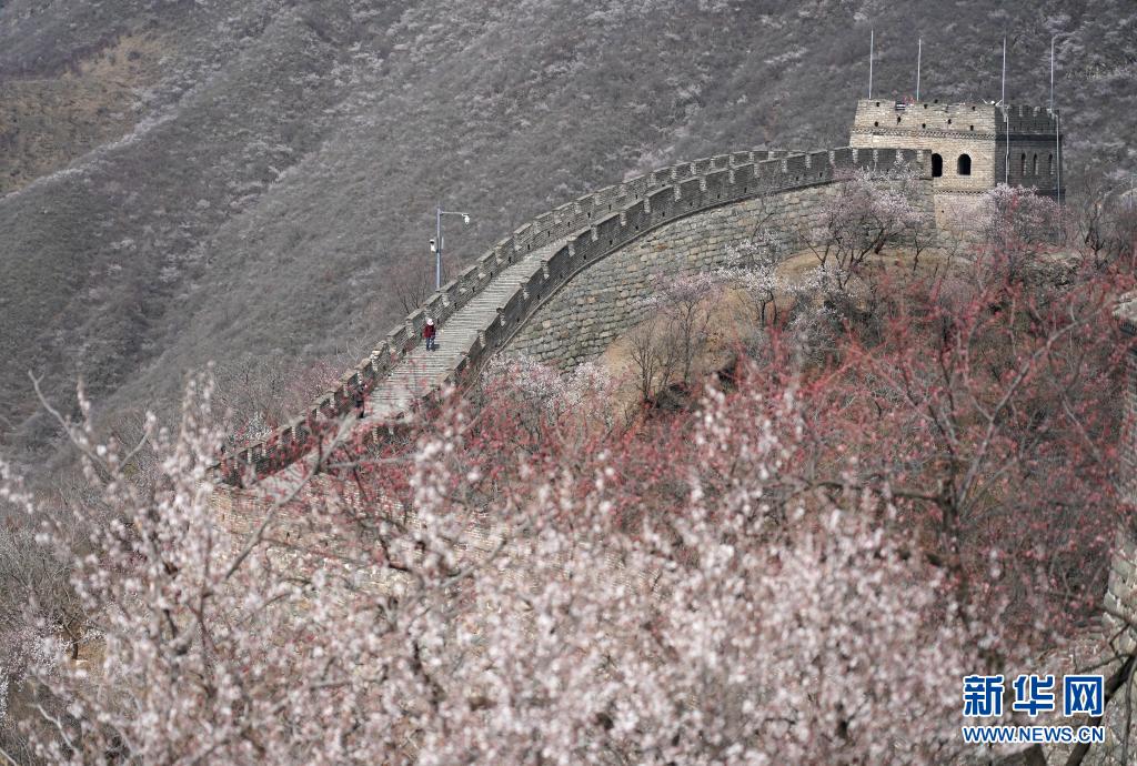 近日,隨著氣溫逐步回升,北京慕田峪長城山花爛漫,春意漸濃。