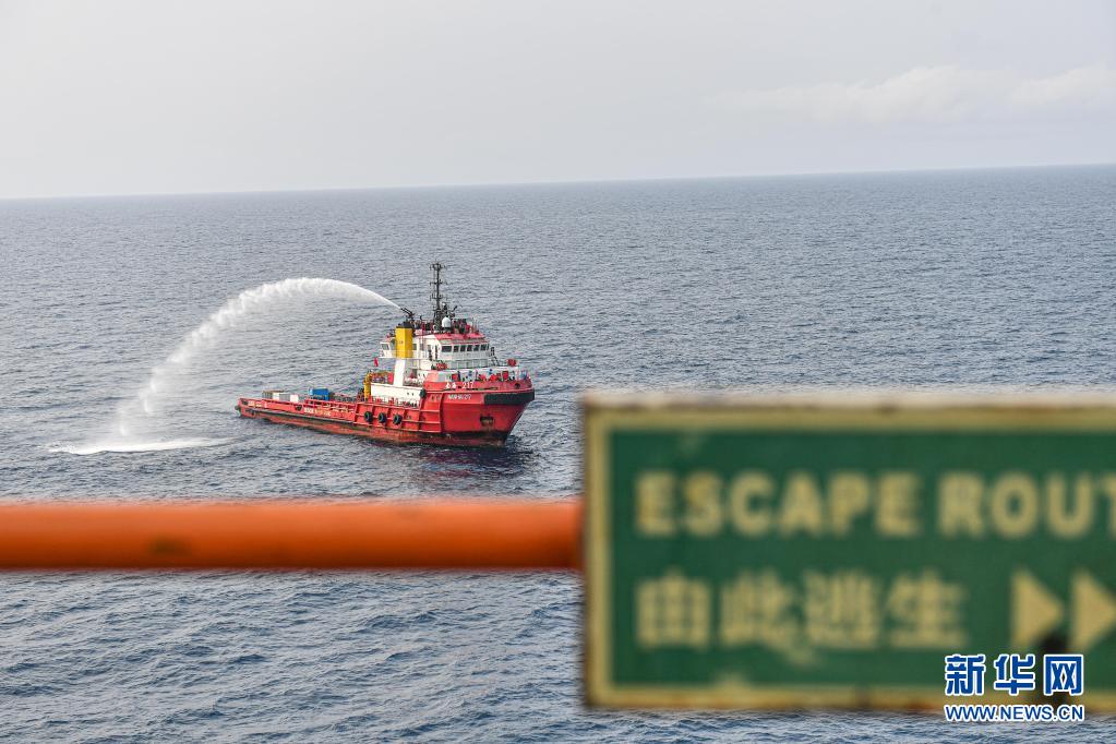4月25日,為中國海油樂東15-1氣田運送物資的拖船在南海北部海域參與該氣田舉行的應急演練。