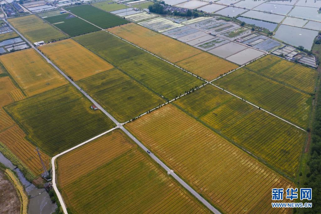 空中俯瞰東林鎮(zhèn)東升村麥田(5月7日攝,無人機照片)。