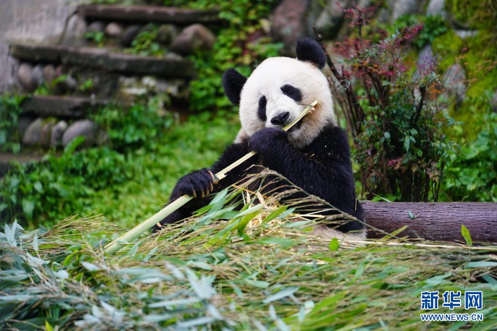這是5月15日在中國大熊貓保護研究中心雅安碧峰峽基地拍攝的大熊貓。
