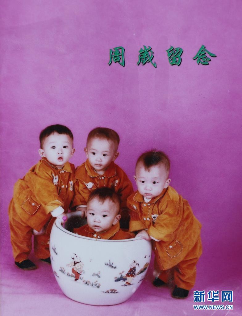 這是四胞胎周歲留影(資料照片)。