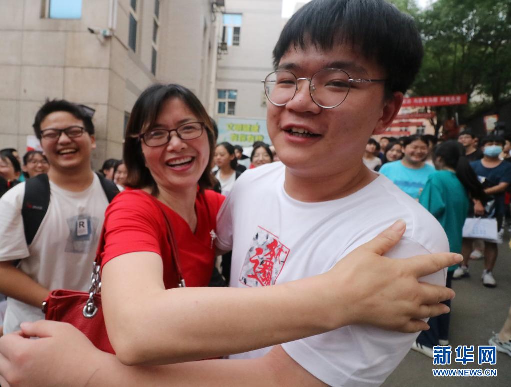 6月9日,在湖南省婁底市第二中學(xué)考點,走出考場的老三李慶民和班主任舒老師擁抱。