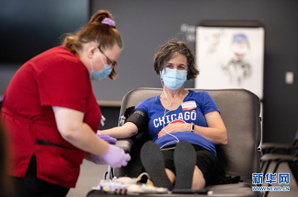 這是6月14日在美國芝加哥的大芝加哥地區(qū)紅十字會一獻(xiàn)血站內(nèi)拍攝的獻(xiàn)血志愿者。新華社發(fā)(喬爾·萊納攝)