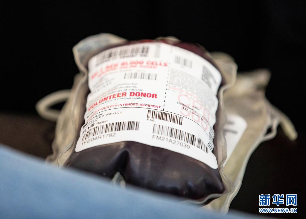 這是6月14日在美國(guó)芝加哥的大芝加哥地區(qū)紅十字會(huì)一獻(xiàn)血站內(nèi)拍攝的血袋。新華社發(fā)(喬爾·萊納攝)