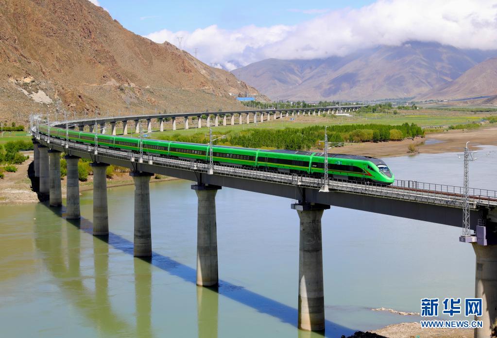 試運行的復(fù)興號列車行駛在桑日縣境內(nèi)(6月8日攝)。