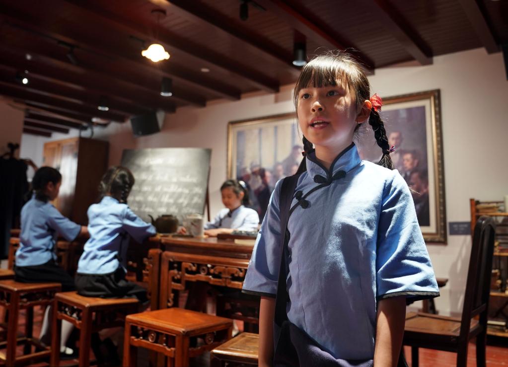 5月31日,全新布展提升后的中共四大紀(jì)念館重新開館,首批“小紅花”小小講解員進(jìn)行了專場(chǎng)情景劇的首演。新華社記者 劉穎 攝