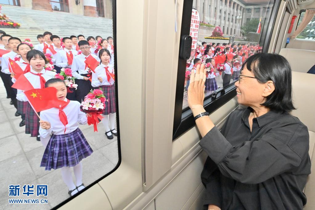 這是張桂梅向歡迎的少年兒童致意。