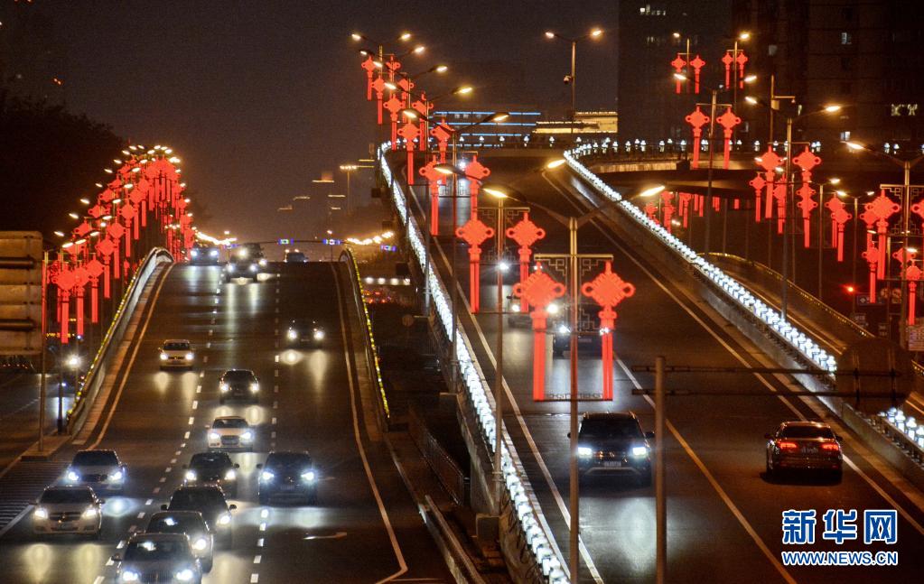 彩燈裝扮的北京市復(fù)興路(6月28日攝)。