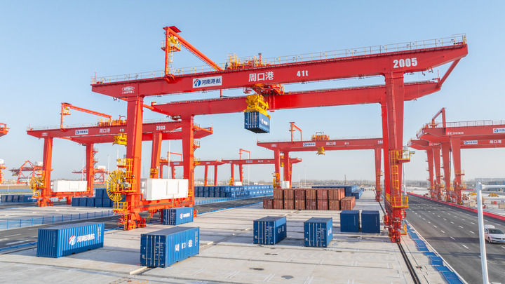 目前,河南集装箱航线已累计达到48条。2025年前11个月,全省累计完成港口吞吐量6067.6万吨,同比提高20.2%;常态化开行郑州至青岛、连云港、宁波等铁海联运班列,至沿海六个主要港口铁海联运集装箱运量达到53.1万标箱,同比增长9.8%。