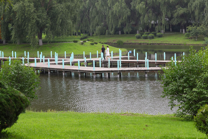 图为市民在铁西区细河U谷公园内散步。新华社记者杨青 摄