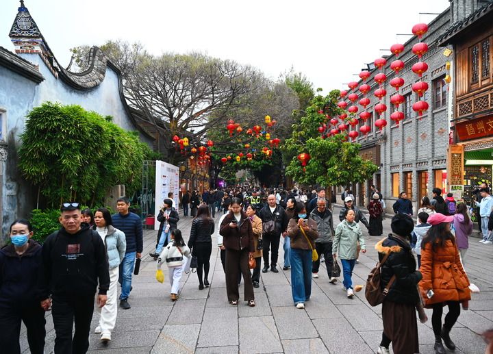 如今,这里一年四季可见身着汉服的游客,与古厝风貌相映成趣,构成一道流动的风景线。仅今年春节假期和元宵节期间,三坊七巷就接待游客超过180万人次。
