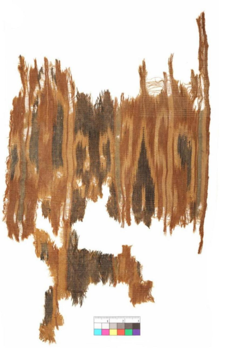 在对青海都兰热水墓群2018血渭一号墓出土的扎经染色织物残片研究中,研究人员通过碳十四测年与树轮校正双重验证,确认该织物织造年代不晚于公元750年。这是迄今国际范围内经科学检测认定的、年代最早的扎经染色织物实物,将我国扎经染色工艺的确切历史实证提前至盛唐时期。