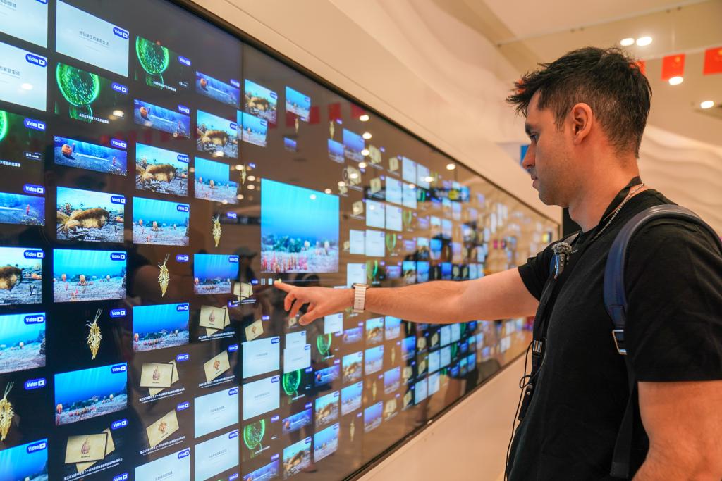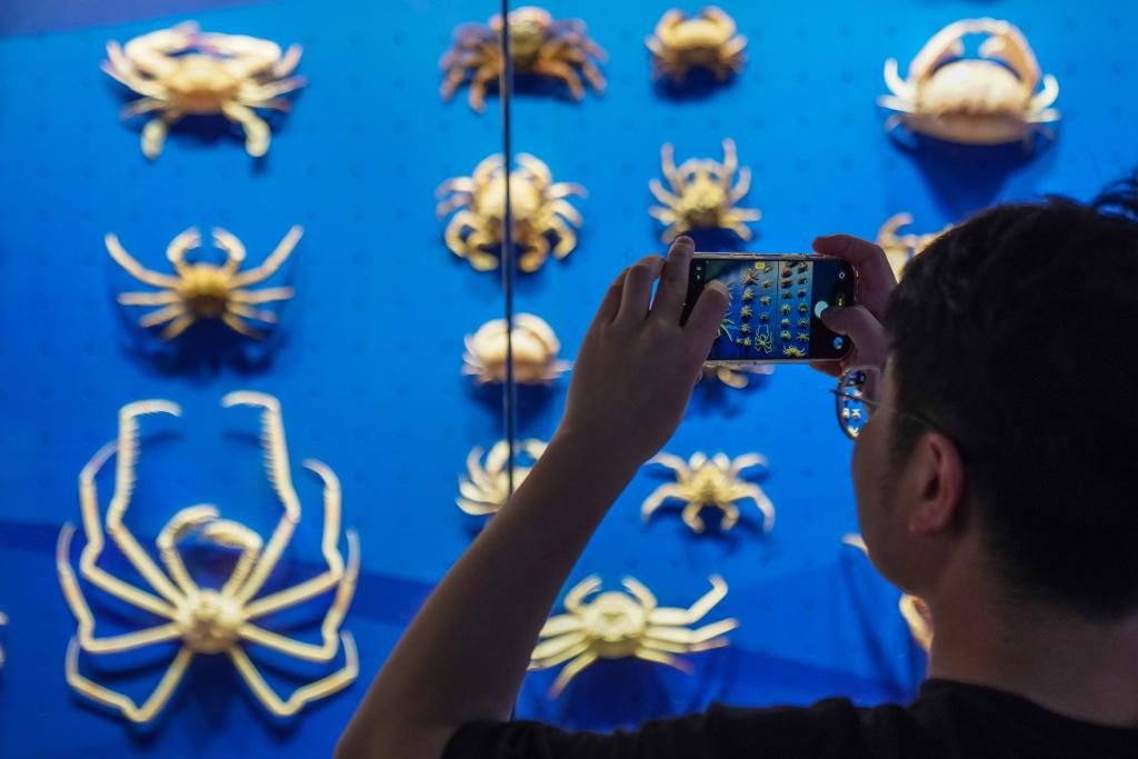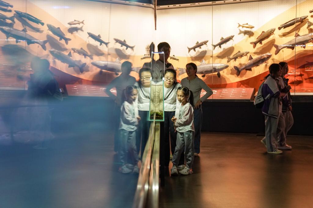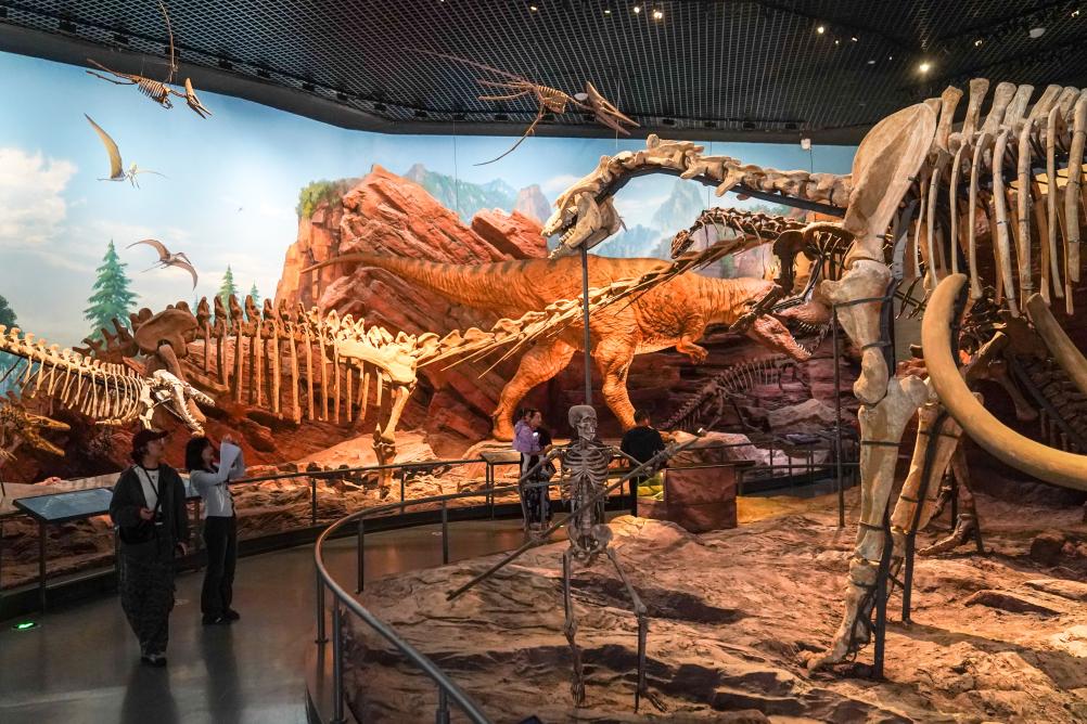 4月18日,游客在澄江化石地世界自然遗产博物馆参观。