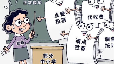 人數(shù)不夠教師來湊。主責主業(yè)成“副業(yè)”,工作負擔蹭蹭漲,讓教師苦不堪言。教師的時間都用在“副業(yè)”上了,哪還有時間教書育人?為教師減負,要減掉的正是那些教師不應(yīng)承擔、與教育教學無關(guān)的事項,既要“治標”,也要“治本”。