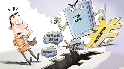 近期,APP自動續(xù)費亂象再次引發(fā)社會廣泛關(guān)注。自動續(xù)費不規(guī)范問題由來已久,飽受消費者詬病,相關(guān)部門多次出臺治理辦法。商家與其費盡心機玩文字游戲,不如把精力放到提高產(chǎn)品和服務(wù)質(zhì)量上來。少點套路,才可能多點粘性“鐵粉”。