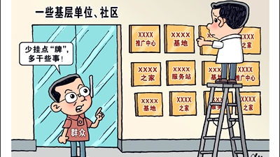 開展達標評比、創(chuàng)建示范活動,本是以標兵引領(lǐng)推動工作落實的有效之舉。但是一些部門卻將發(fā)牌視為“工作下沉”的象征,認為“掛牌即落實”,甚至將掛牌數(shù)量與考核排名掛鉤,大搞“繁瑣哲學”,動輒開發(fā)出上百項指標,以此下移壓力。部分社會組織甚至以“達標創(chuàng)建”之名創(chuàng)收牟利,造成負面影響。