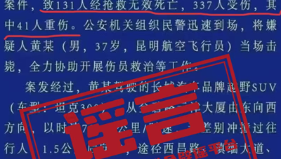近日,有網(wǎng)民散布虛假的“警情通報”,造謠傳播云南昆明交通事故“致131人死亡,337人受傷”等不實信息,公安機關(guān)核查后,依法對造謠者進行了刑事拘留?!八{底白字”的“警情通報”是公安機關(guān)權(quán)威發(fā)布的重要渠道。不法分子竟敢冒用官方標識,將“2死9傷”惡意篡改成“131人死亡、337人受傷”,并編造聳人聽聞的細節(jié),真是膽大包天!