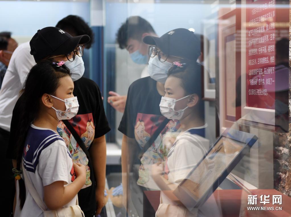 7月7日,觀眾在中國人民抗日戰(zhàn)爭紀念館參觀“中流砥柱——中國共產(chǎn)黨抗戰(zhàn)文物專題展”。新華社記者 張晨霖 攝