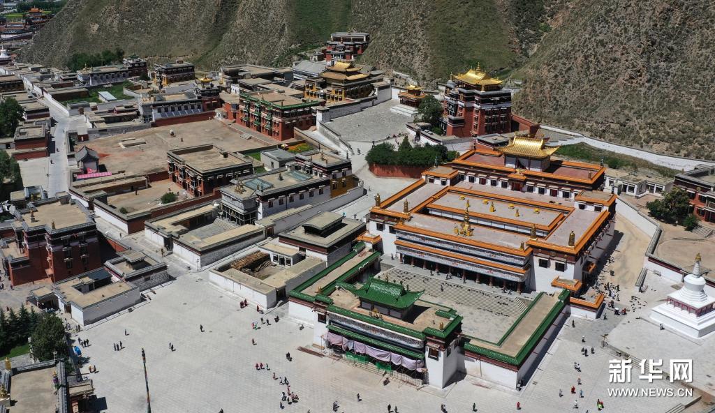 這是7月12日拍攝的拉卜楞寺建筑群(無(wú)人機(jī)照片)。新華社記者 陳斌 攝