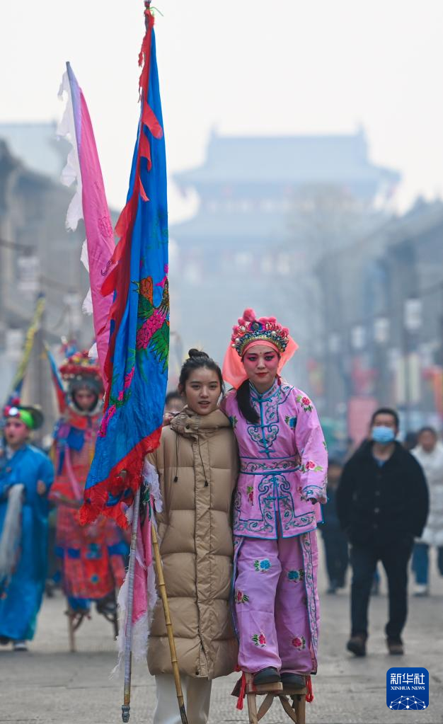 当日是农历正月十六,在河南省浚县举行的正月古庙会上,几十支社火团队轮番表演,踩高跷、扭秧歌、耍狮子,锣鼓喧天,热闹非凡,形成一道富有特色的中原文化景观。河南省浚县的正月古庙会已有1600多年历史,有“华北第一庙会”之称,被誉为民俗文化的“活化石”,是中国民间文化保护工程项目、国家级非物质文化遗产。