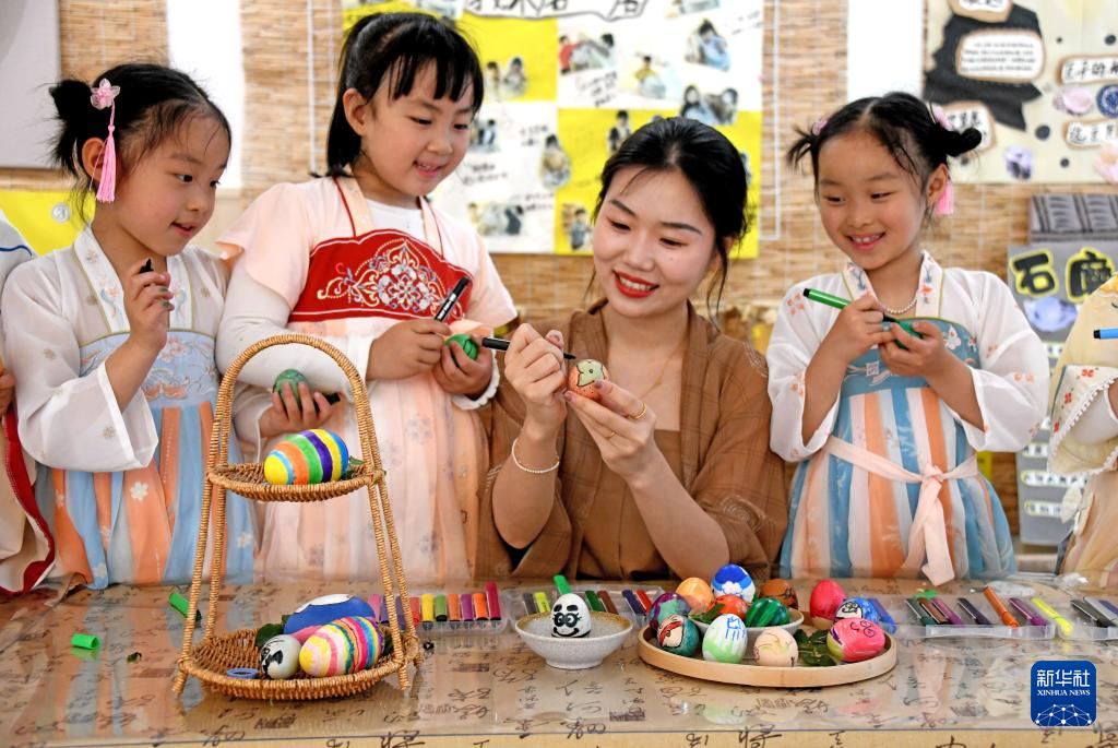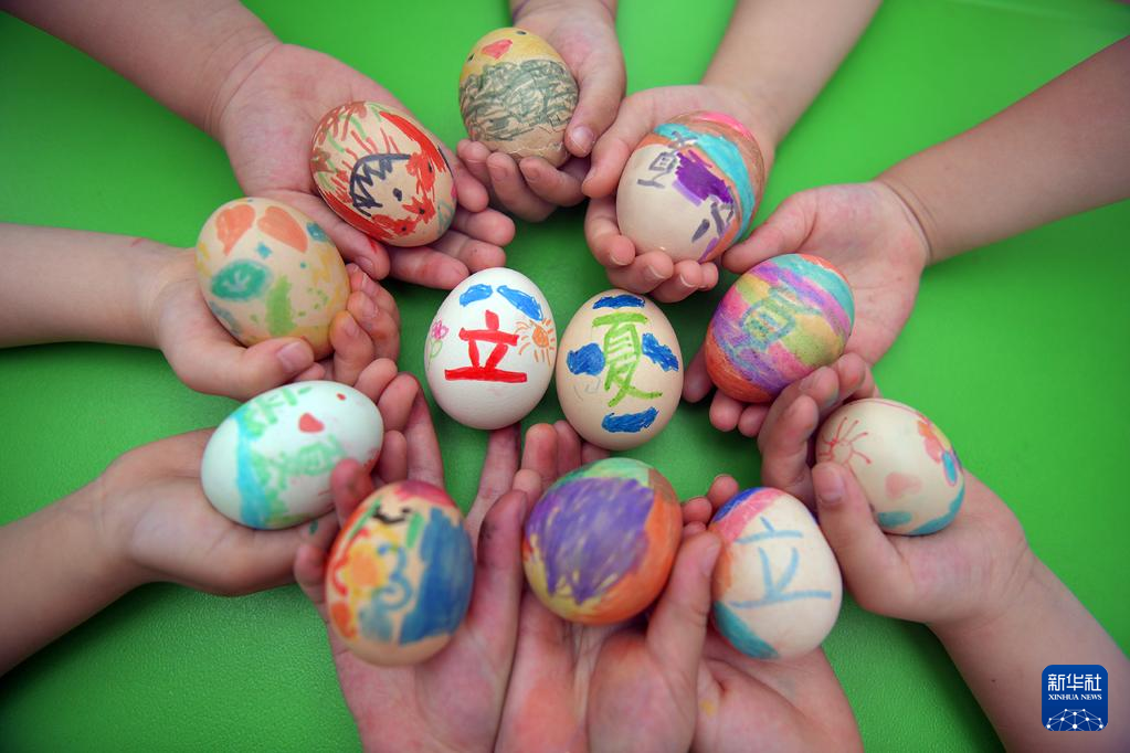 5月5日,浙江省台州市仙居县中心幼儿园的小朋友在老师的指导下绘立夏彩蛋。