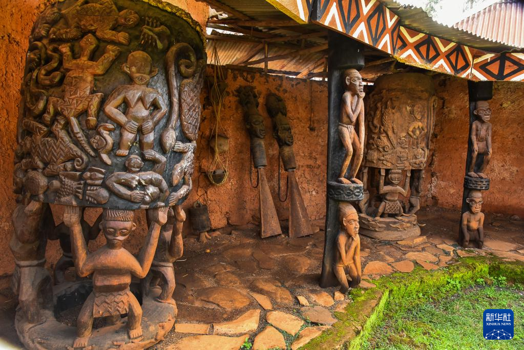 这是4月13日在喀麦隆西部大区拍摄的巴图方酋邦宫殿内的木制器物。