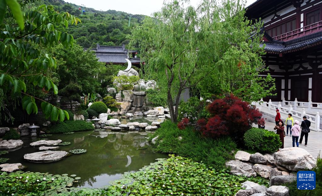 游客在西安华清宫景区莲花汤参观游览(5月5日摄)。