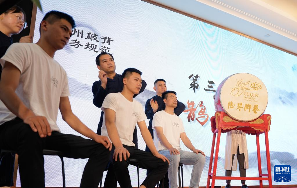 6月10日,在扬州举行的首届全国传统修脚术非遗传承人峰会上,学员展示敲背技艺。