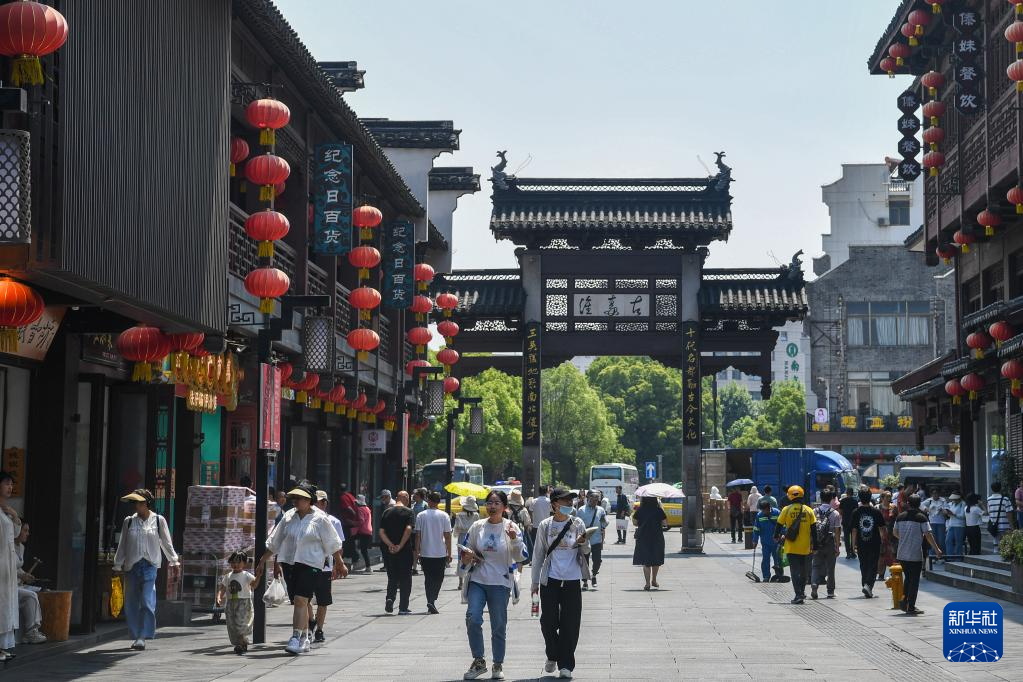 游客在南京夫子庙景区参观游玩(6月12日摄)。