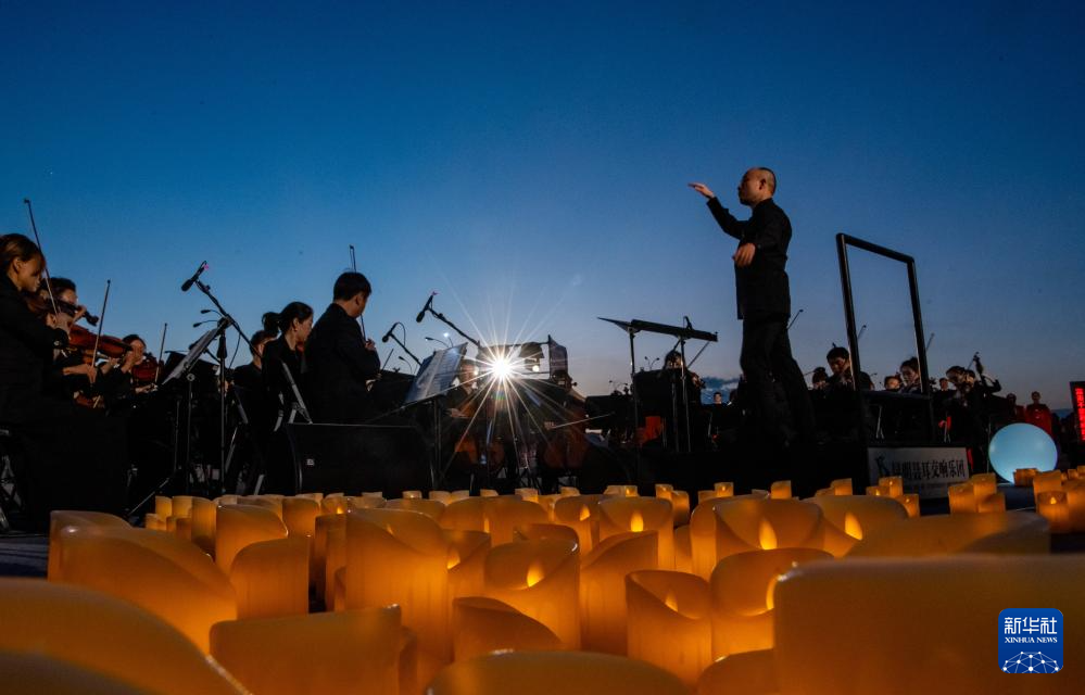 伴着晚霞,第七届聂耳音乐周昆明分会场开幕式在滇池畔举行(7月17日摄)。