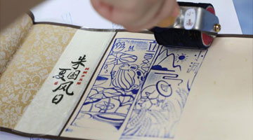 8月20日,在“朱夏国风日”传统文化沉浸式体验活动中,国家图书馆工作人员为孩子们制作国风卷轴。