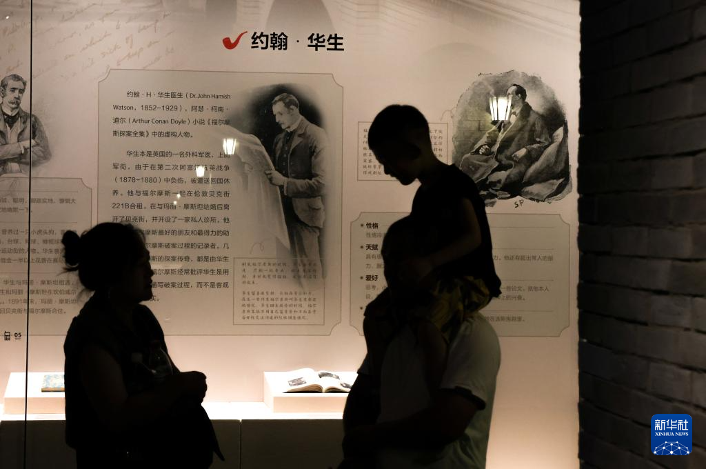 8月20日,小朋友与家长观看“福尔摩斯大型沉浸式主题展”。