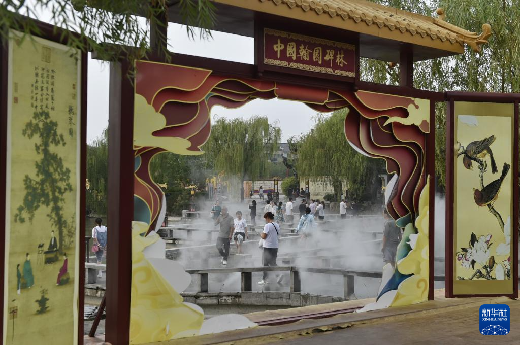 暑期以来,位于河南省开封市的中国翰园碑林景区利用周末举办“书画肆集”特色文化活动,邀请书画家现场挥毫泼墨,独特的文化大餐吸引市民和游客前来驻足观赏、游园休闲。