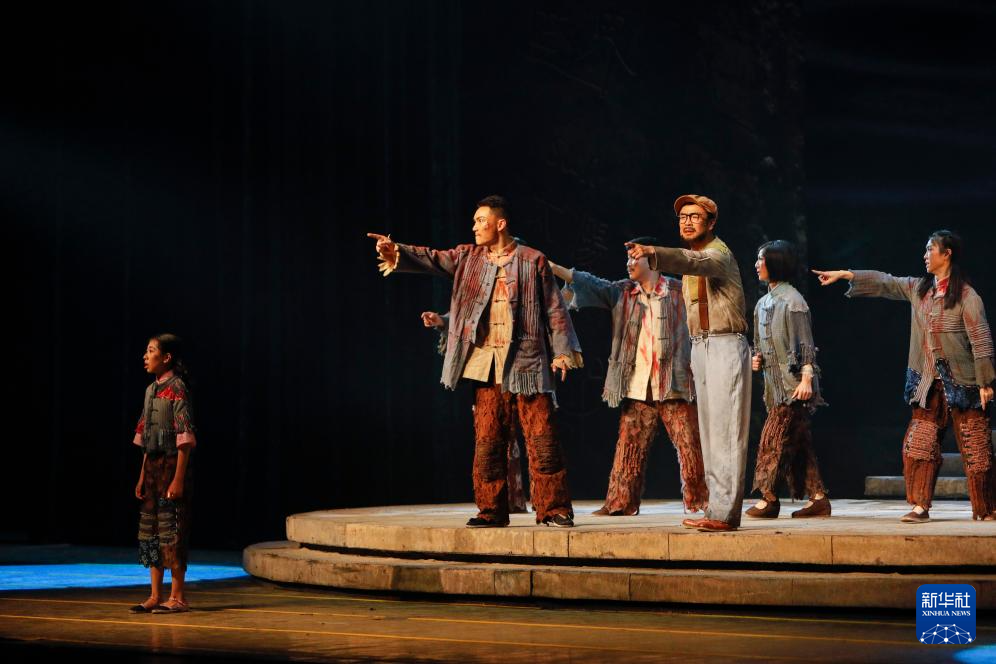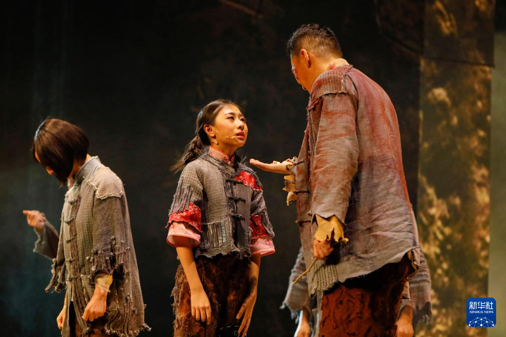 8月29日晚,演员在兰州音乐厅表演新版红色儿童剧《大豆谣》。