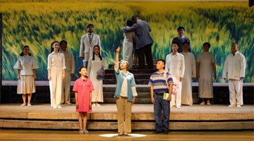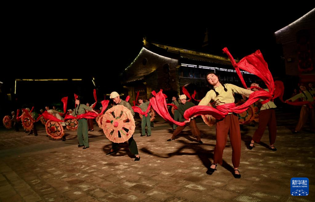 8月31日,演员在陕西延安的金延安文化旅游产业园区表演红色歌舞剧《延安十三年》。