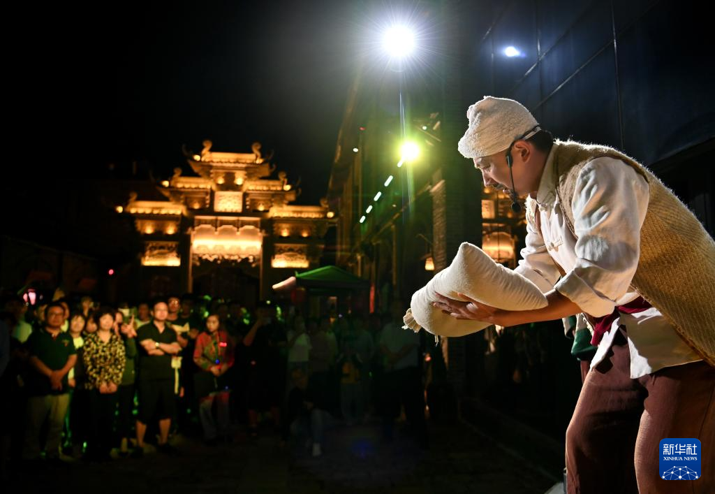 8月31日,游客在陕西延安的金延安文化旅游产业园区观看红色歌舞剧《延安十三年》。