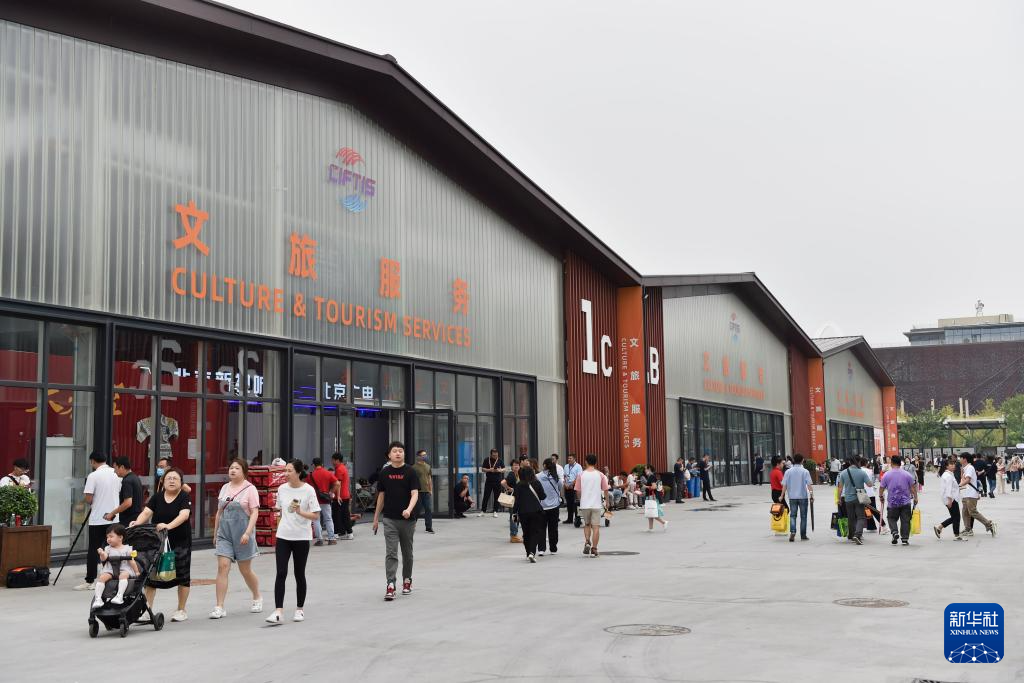 9月2日,在服贸会首钢园区,观众经过文旅服务展区。
