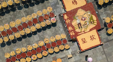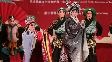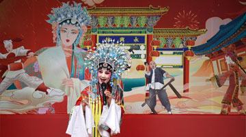 9月14日,观众参观陕西西安少陵原十六国大墓出土的骑马吹角俑和骑马击鼓俑。