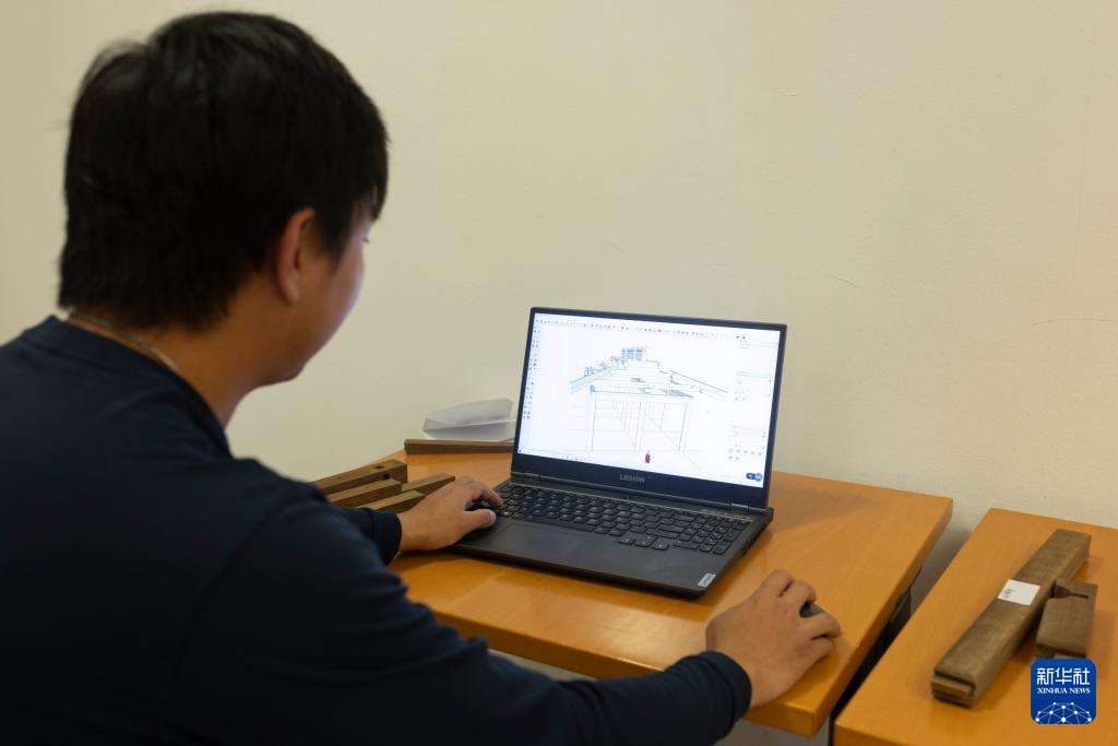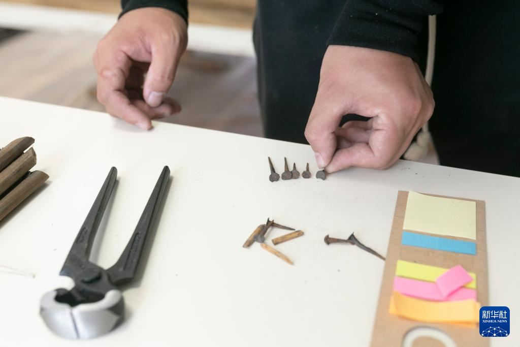 10月10日,在斯洛文尼亚卢布尔雅那的民族志博物馆,故宫博物院专家鲍杰制作大门模型缺失的部件。