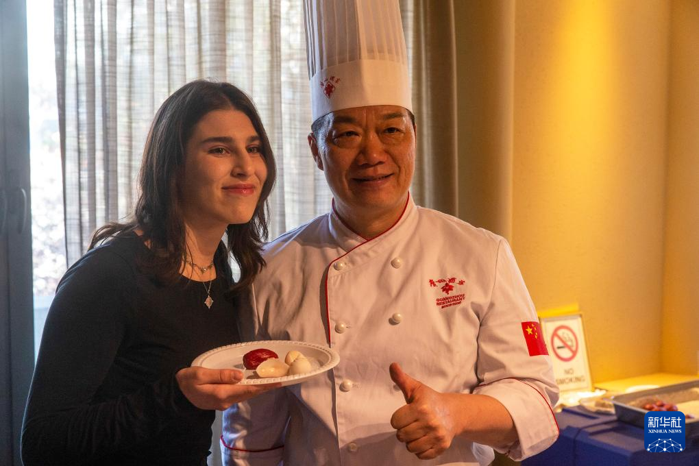 11月20日,在希腊雅典,嘉宾在广东“文化海外行”活动现场品鉴美食。