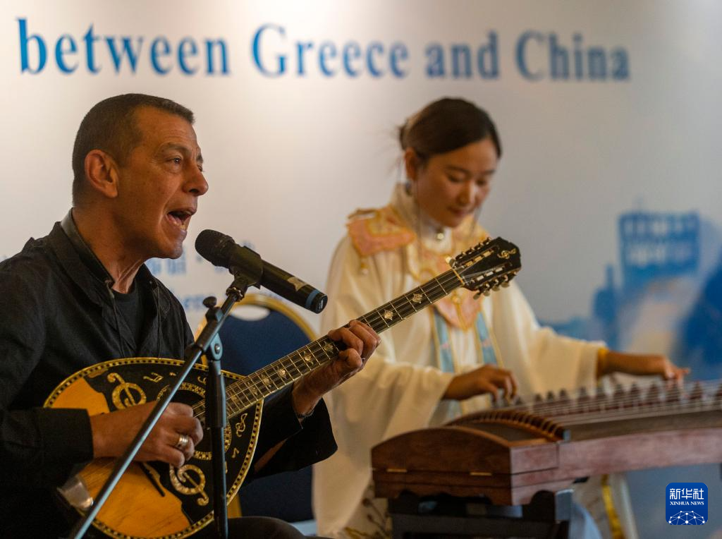 11月20日,在希腊雅典,音乐家在广东“文化海外行”活动现场表演。新华社发(马里奥斯·罗洛斯摄)