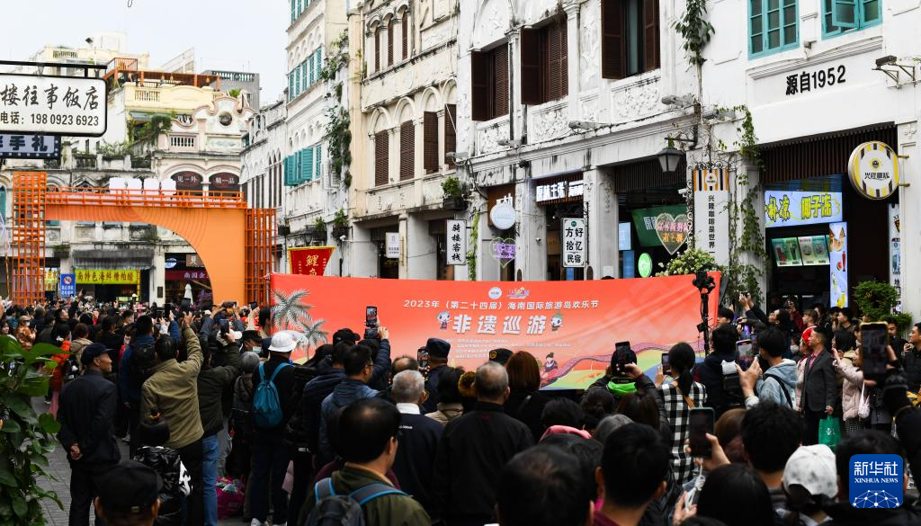 当日,由海南省旅游和文化广电体育厅主办的2023年(第二十四届)海南国际旅游岛欢乐节非遗巡游活动在海口骑楼老街举行。据悉,该活动邀请了云南、湖南、广东、广西等地以及海南省内的部分非遗项目表演团队参加,在巡演期间尽情展示非遗项目的魅力。