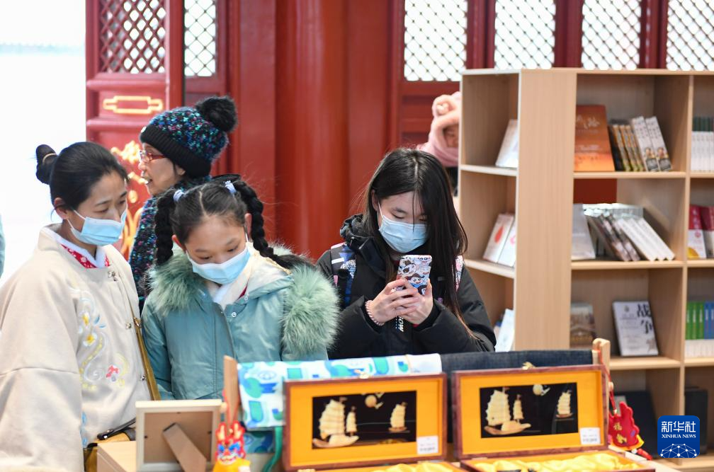 这是1月18日拍摄的宏恩观内的一处文创商店。