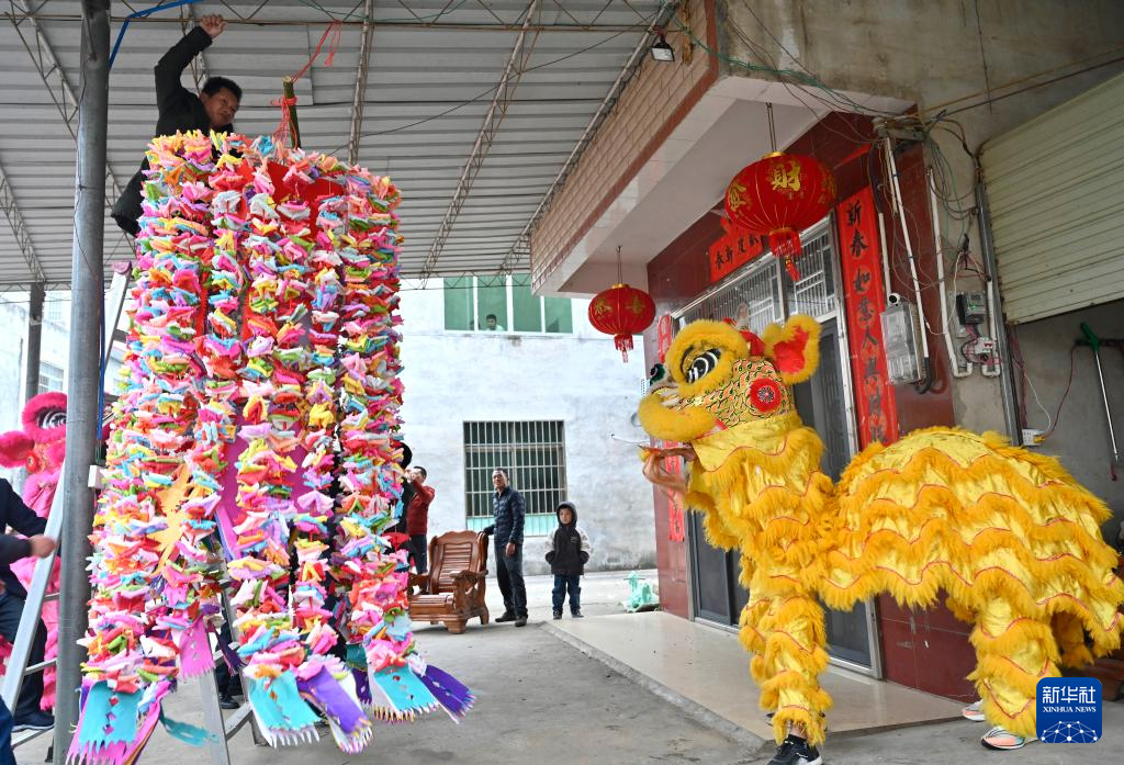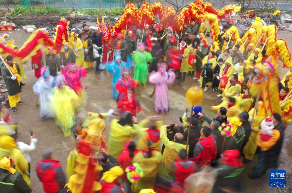 2月22日,村民在湖南省衡阳市蒸湘区呆鹰岭镇进行舞龙和戏曲表演。