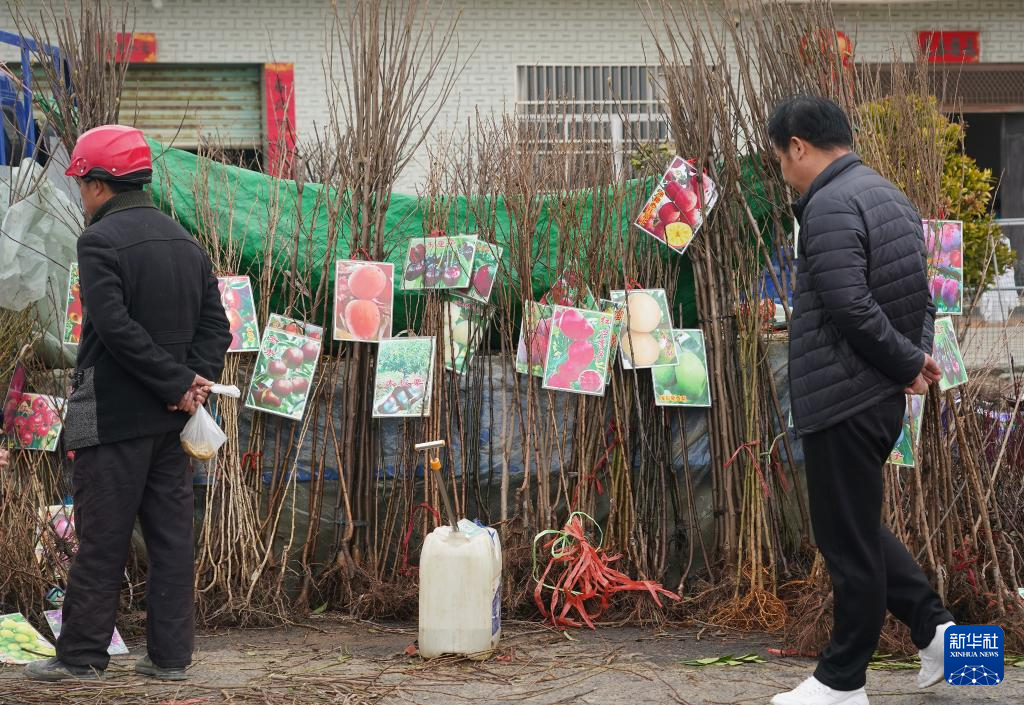3月13日,附近农民在马回岭庙会选购树苗。