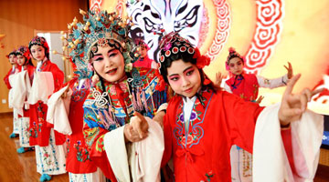 3月25日晚,湖南张家界《魅力湘西》艺术团的演员在表演节目。